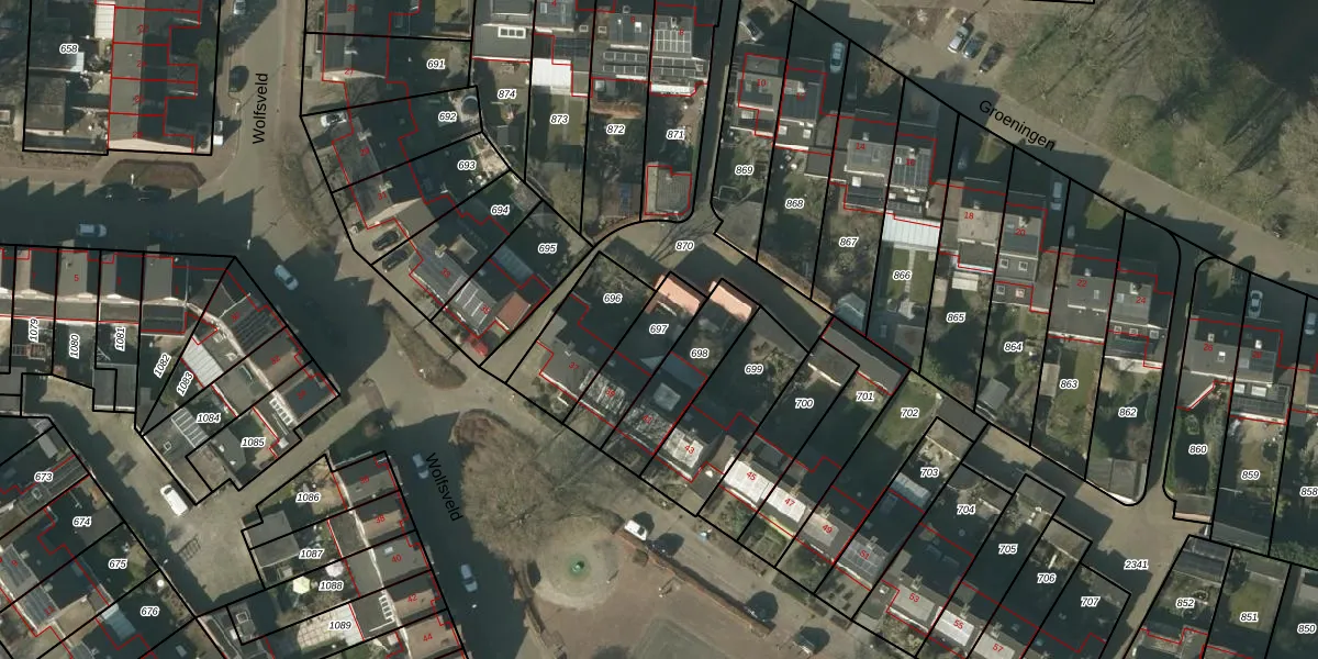 Gebruik de zoekbalk of klik op een perceel om informatie over het perceel te bekijken.