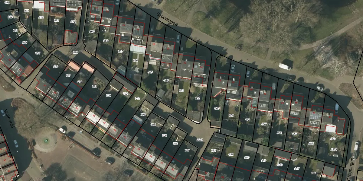 Gebruik de zoekbalk of klik op een perceel om informatie over het perceel te bekijken.