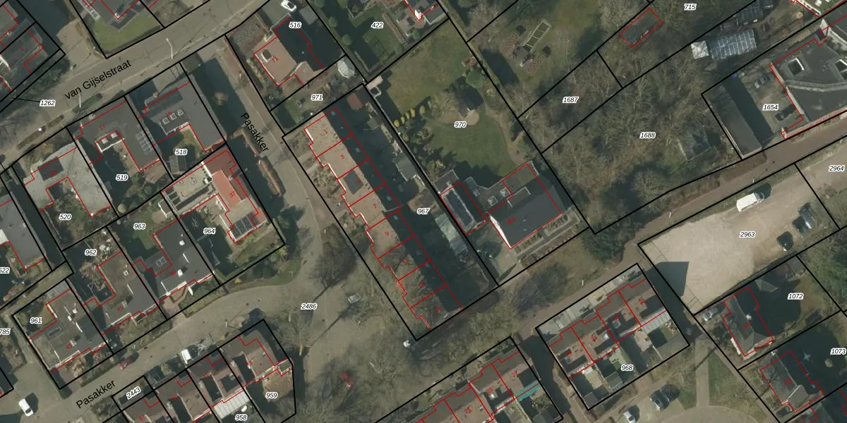 Gebruik de zoekbalk of klik op een perceel om informatie over het perceel te bekijken.