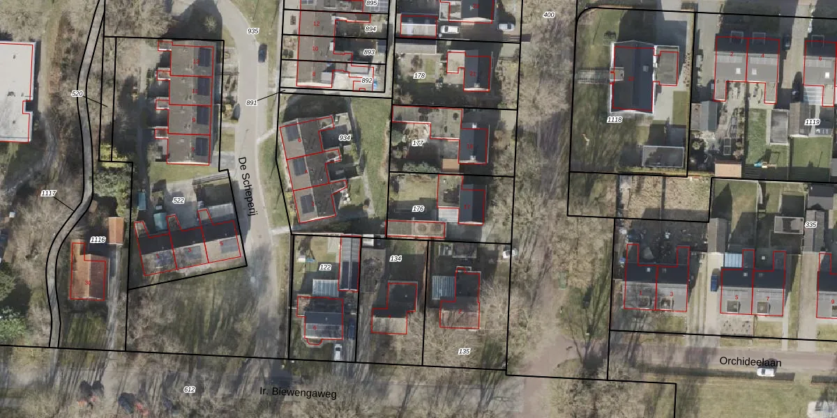 Gebruik de zoekbalk of klik op een perceel om informatie over het perceel te bekijken.