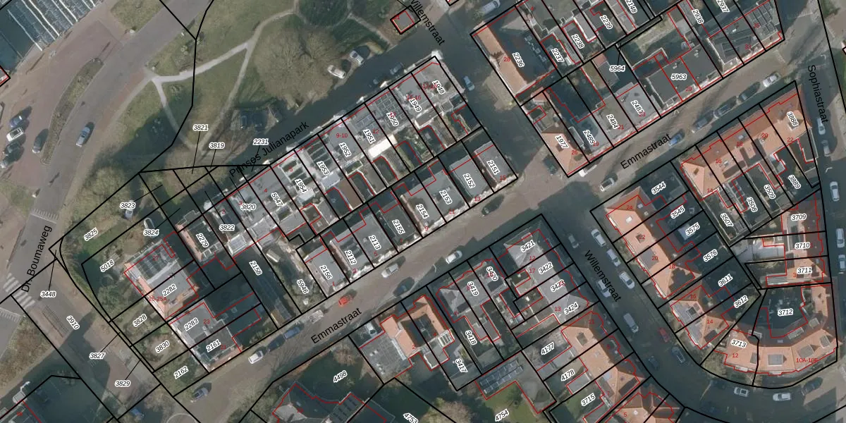Gebruik de zoekbalk of klik op een perceel om informatie over het perceel te bekijken.