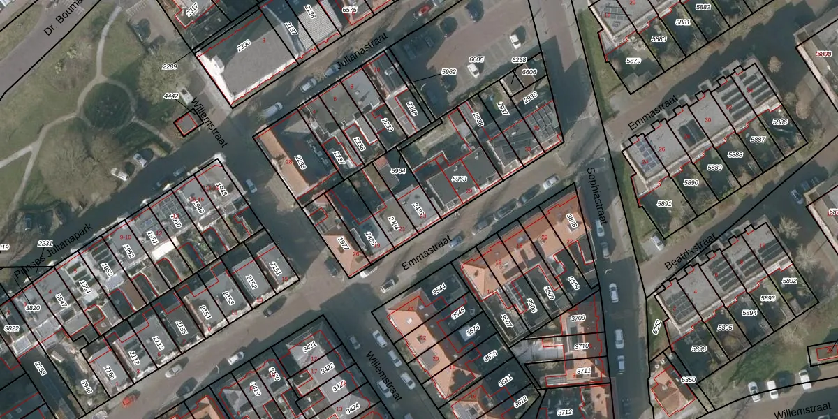 Gebruik de zoekbalk of klik op een perceel om informatie over het perceel te bekijken.