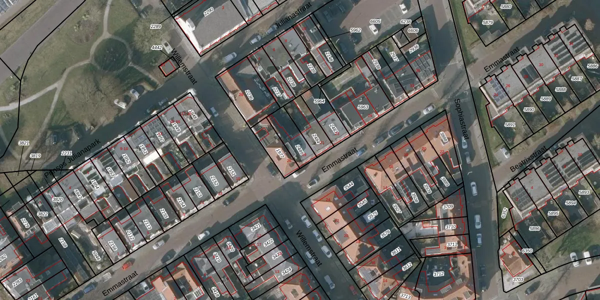 Gebruik de zoekbalk of klik op een perceel om informatie over het perceel te bekijken.
