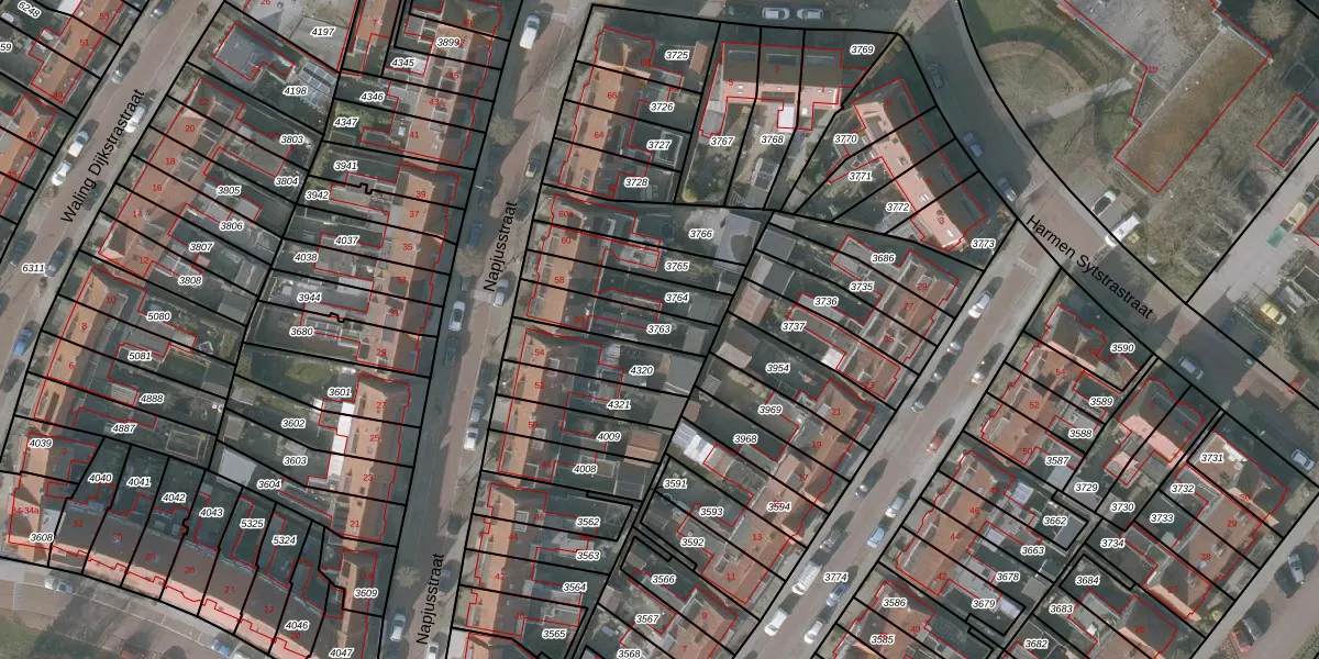 Gebruik de zoekbalk of klik op een perceel om informatie over het perceel te bekijken.