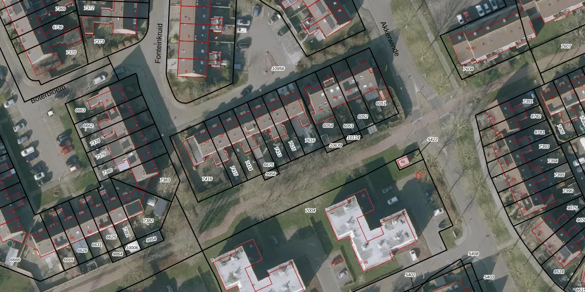 Gebruik de zoekbalk of klik op een perceel om informatie over het perceel te bekijken.