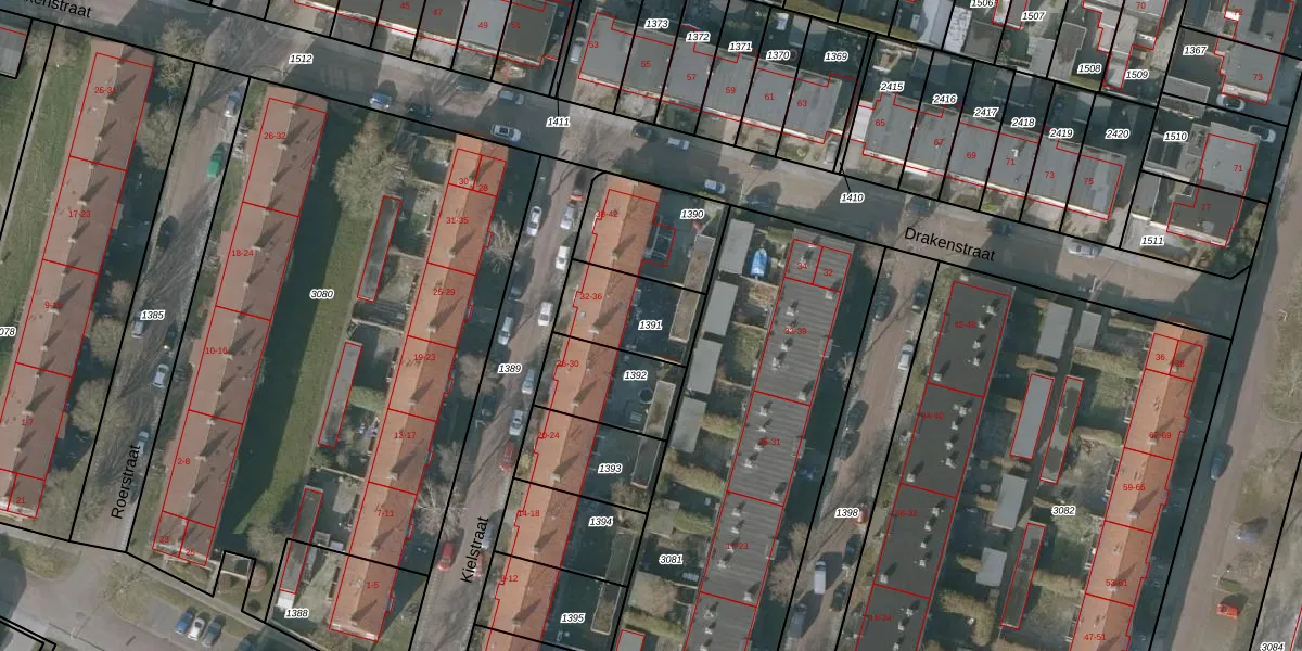 Gebruik de zoekbalk of klik op een perceel om informatie over het perceel te bekijken.