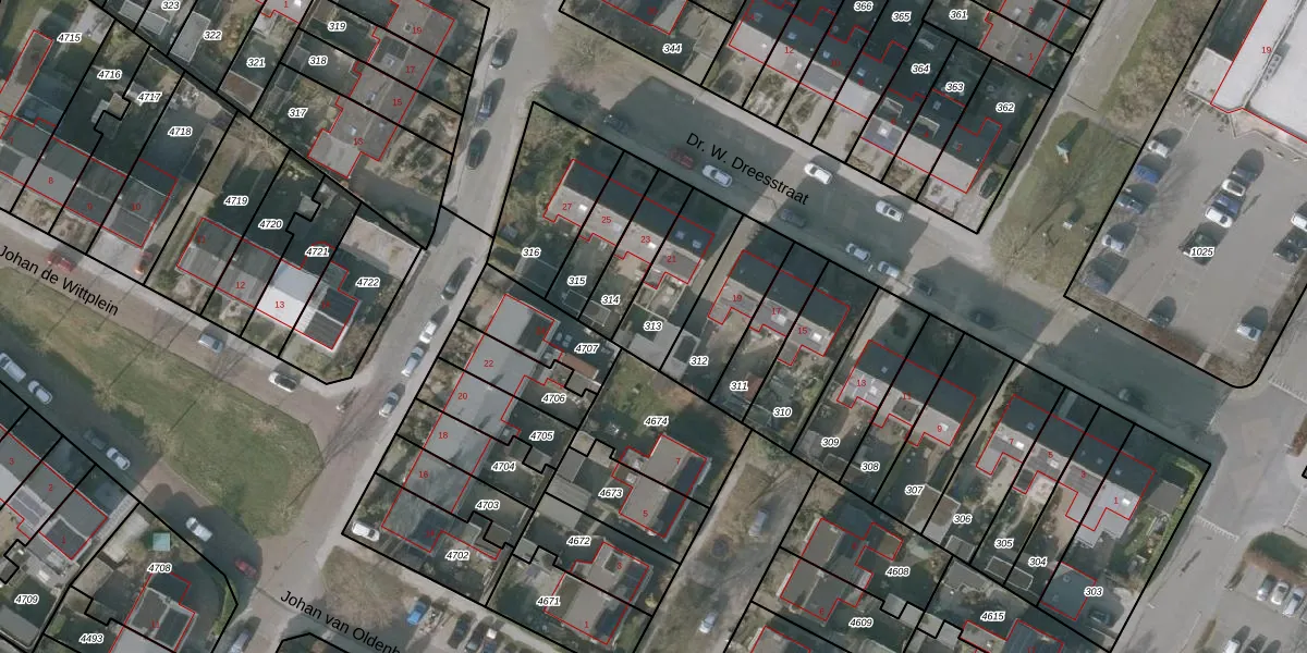 Gebruik de zoekbalk of klik op een perceel om informatie over het perceel te bekijken.