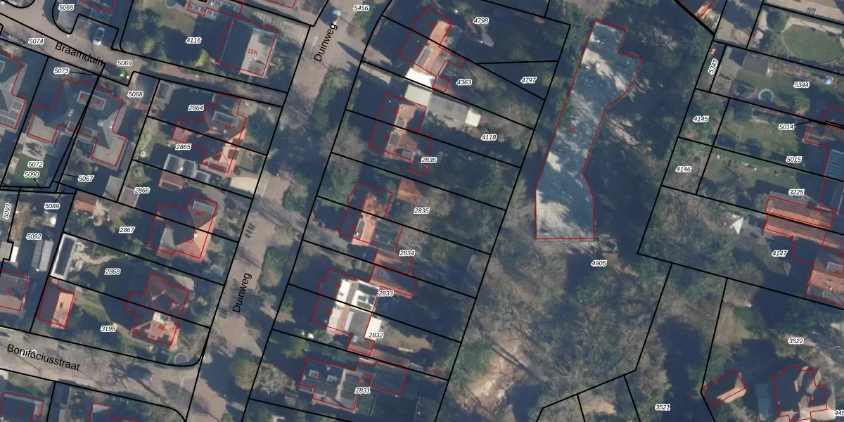 Gebruik de zoekbalk of klik op een perceel om informatie over het perceel te bekijken.