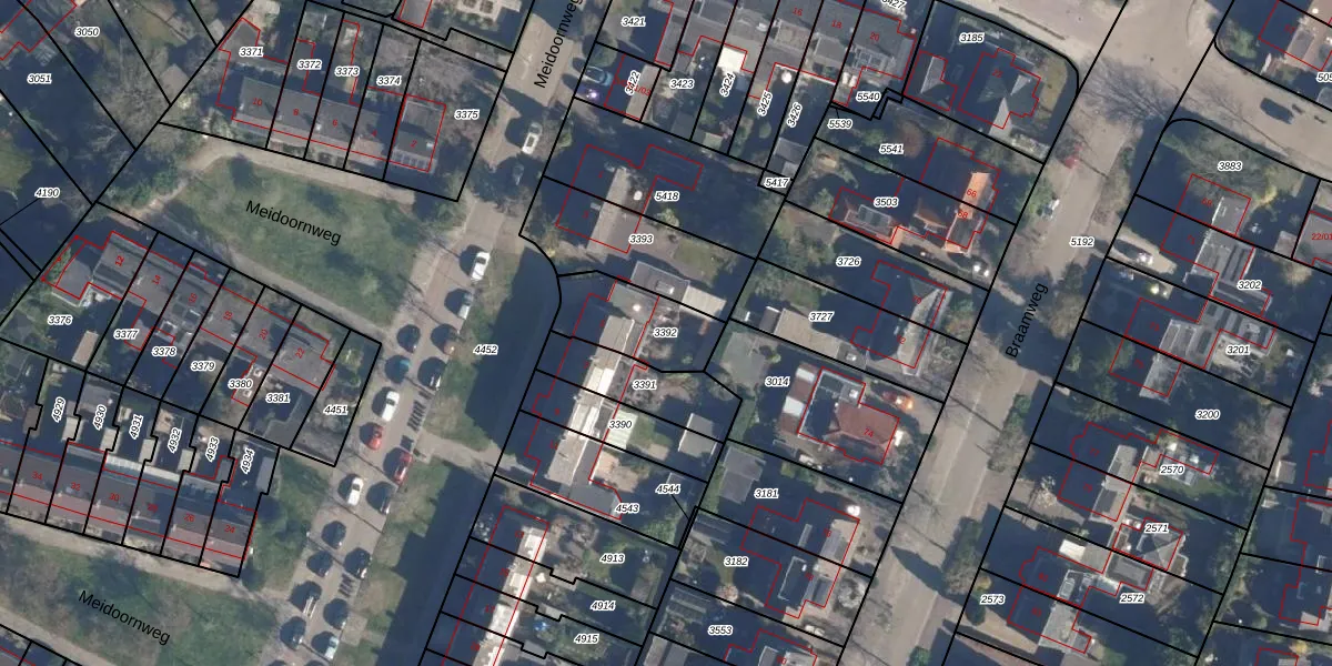 Gebruik de zoekbalk of klik op een perceel om informatie over het perceel te bekijken.