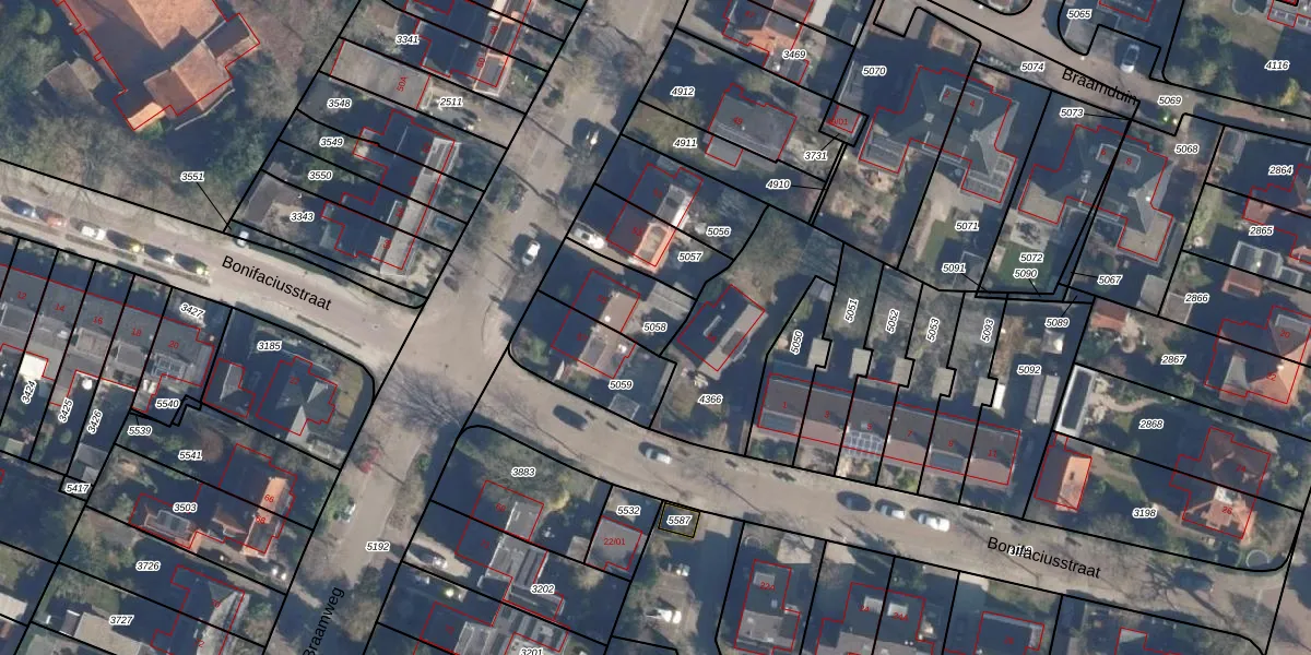 Gebruik de zoekbalk of klik op een perceel om informatie over het perceel te bekijken.