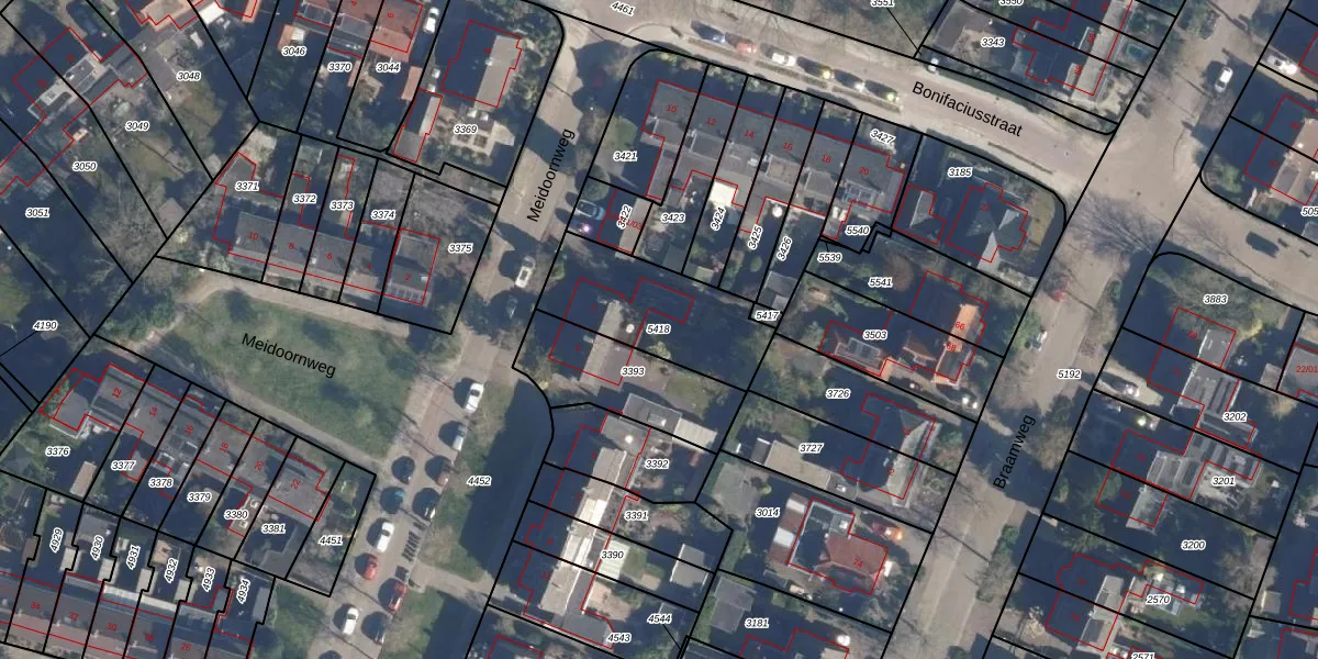 Gebruik de zoekbalk of klik op een perceel om informatie over het perceel te bekijken.