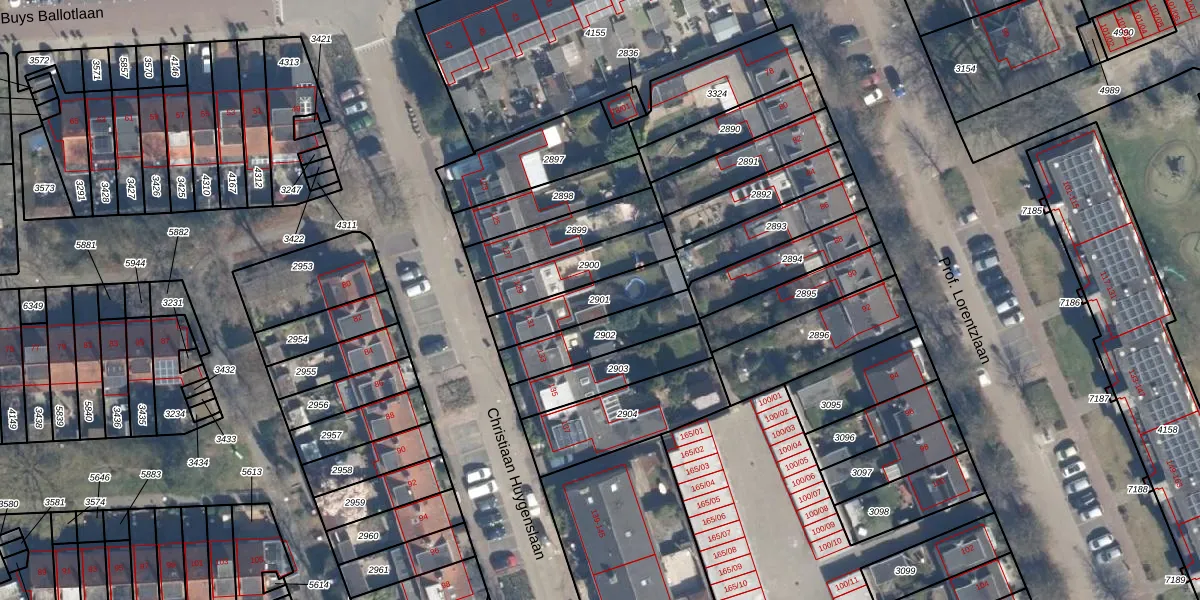 Gebruik de zoekbalk of klik op een perceel om informatie over het perceel te bekijken.