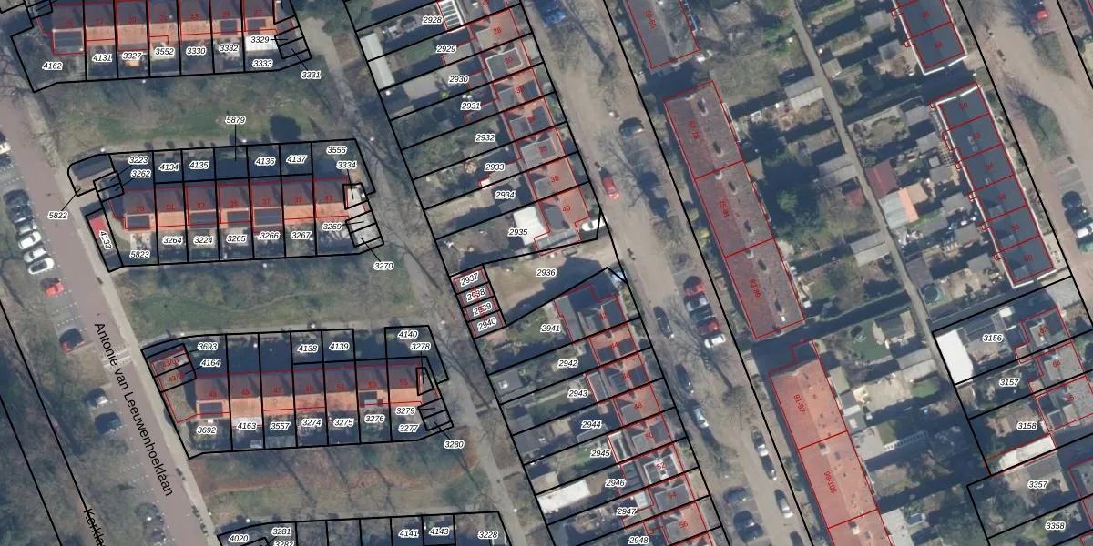Gebruik de zoekbalk of klik op een perceel om informatie over het perceel te bekijken.