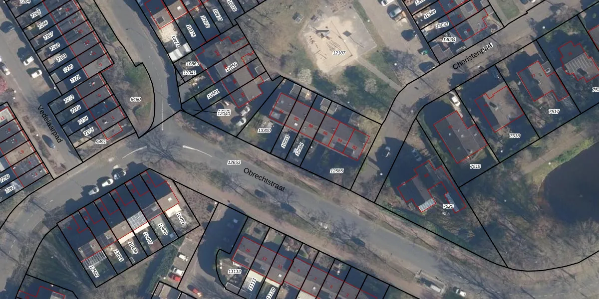 Gebruik de zoekbalk of klik op een perceel om informatie over het perceel te bekijken.