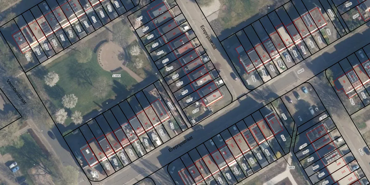 Gebruik de zoekbalk of klik op een perceel om informatie over het perceel te bekijken.