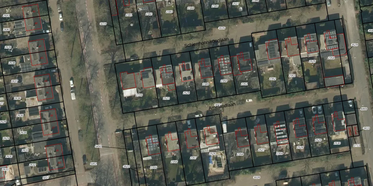 Gebruik de zoekbalk of klik op een perceel om informatie over het perceel te bekijken.