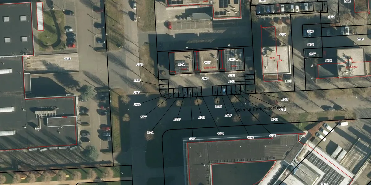 Gebruik de zoekbalk of klik op een perceel om informatie over het perceel te bekijken.