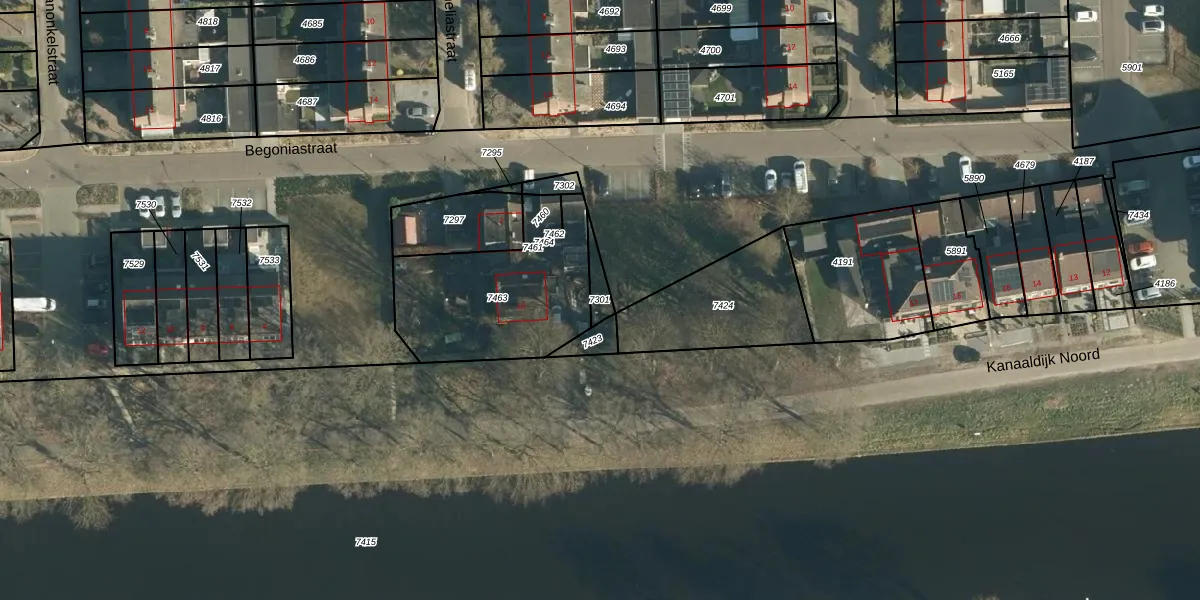Gebruik de zoekbalk of klik op een perceel om informatie over het perceel te bekijken.