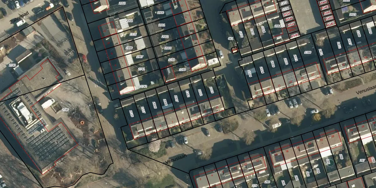 Gebruik de zoekbalk of klik op een perceel om informatie over het perceel te bekijken.