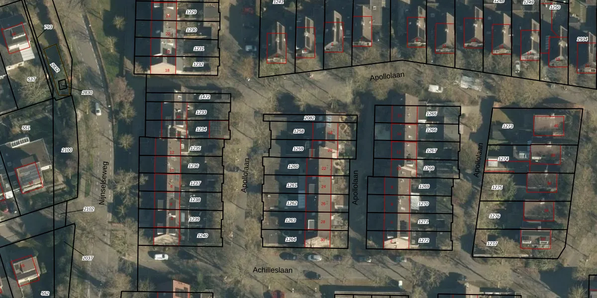 Gebruik de zoekbalk of klik op een perceel om informatie over het perceel te bekijken.