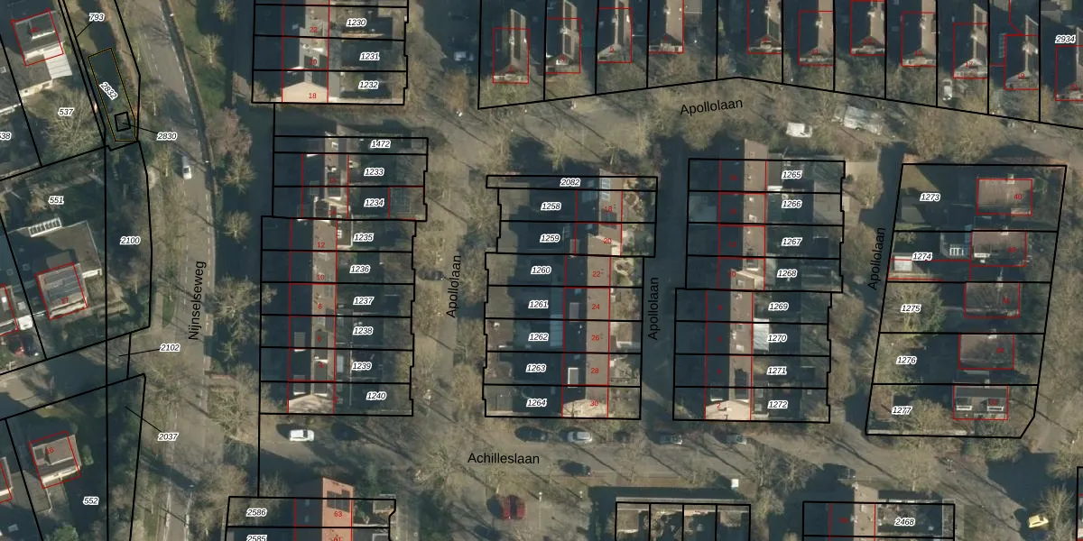 Gebruik de zoekbalk of klik op een perceel om informatie over het perceel te bekijken.