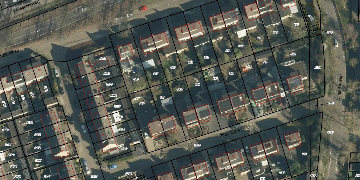 Gebruik de zoekbalk of klik op een perceel om informatie over het perceel te bekijken.