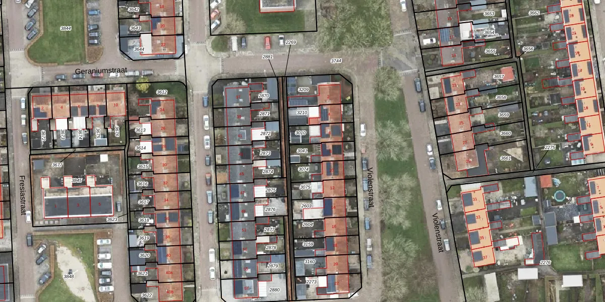 Gebruik de zoekbalk of klik op een perceel om informatie over het perceel te bekijken.