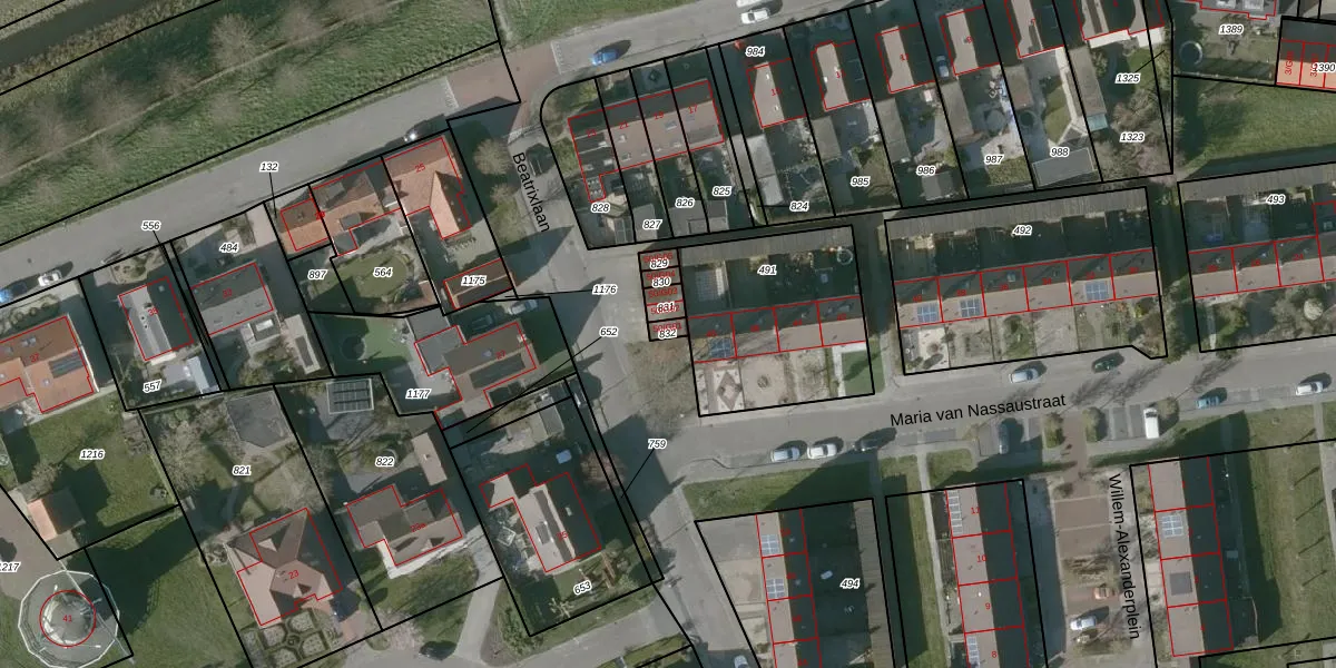 Gebruik de zoekbalk of klik op een perceel om informatie over het perceel te bekijken.