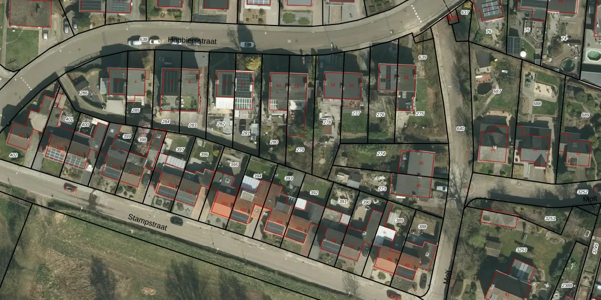 Gebruik de zoekbalk of klik op een perceel om informatie over het perceel te bekijken.