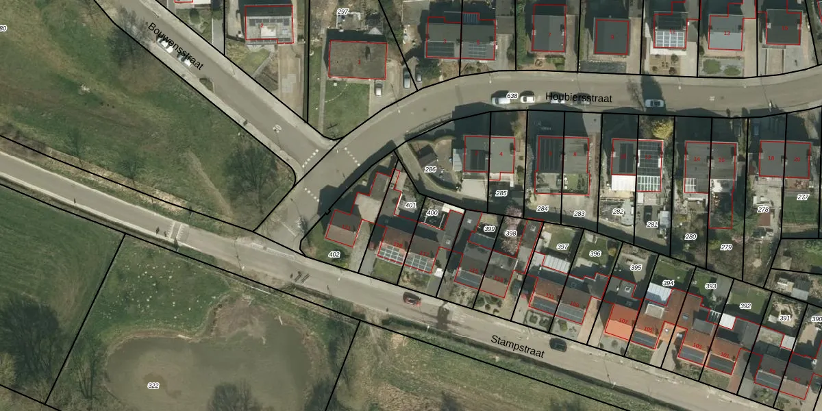 Gebruik de zoekbalk of klik op een perceel om informatie over het perceel te bekijken.