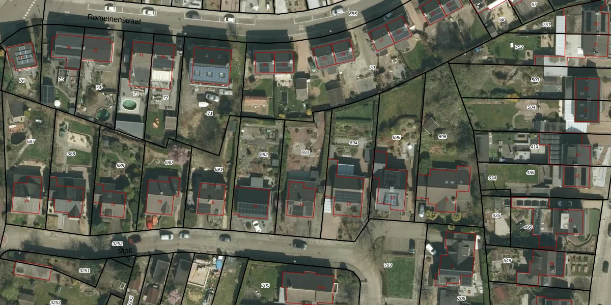 Gebruik de zoekbalk of klik op een perceel om informatie over het perceel te bekijken.