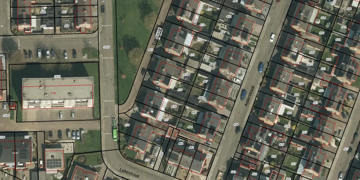 Gebruik de zoekbalk of klik op een perceel om informatie over het perceel te bekijken.