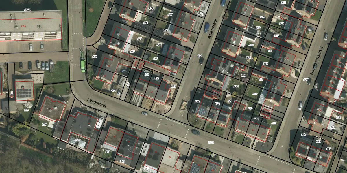 Gebruik de zoekbalk of klik op een perceel om informatie over het perceel te bekijken.