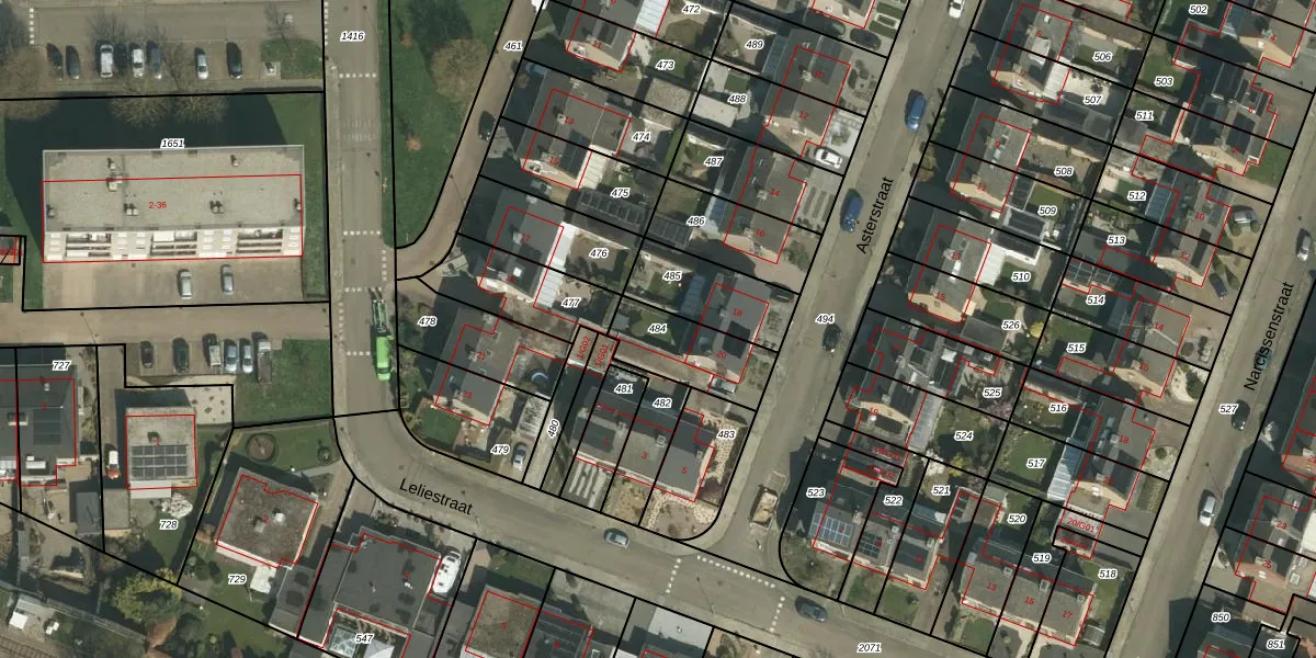Gebruik de zoekbalk of klik op een perceel om informatie over het perceel te bekijken.