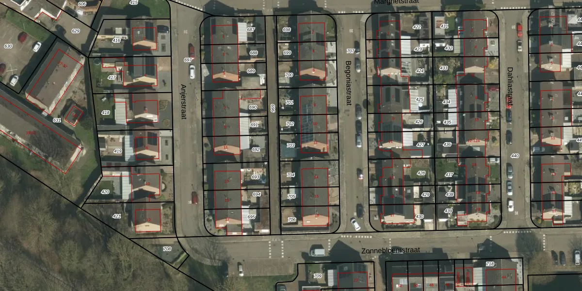 Gebruik de zoekbalk of klik op een perceel om informatie over het perceel te bekijken.