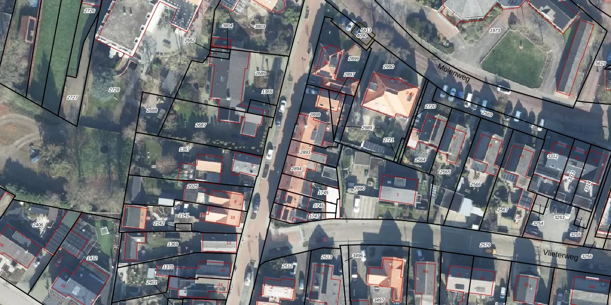 Gebruik de zoekbalk of klik op een perceel om informatie over het perceel te bekijken.