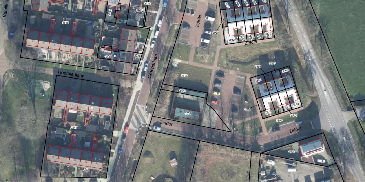 Gebruik de zoekbalk of klik op een perceel om informatie over het perceel te bekijken.