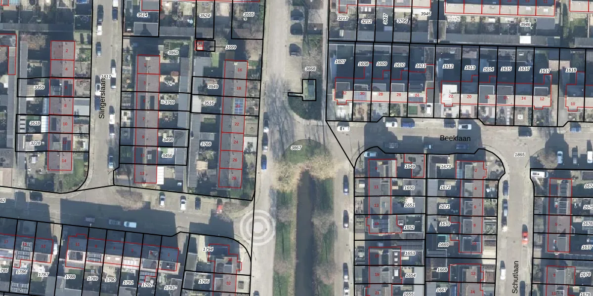 Gebruik de zoekbalk of klik op een perceel om informatie over het perceel te bekijken.