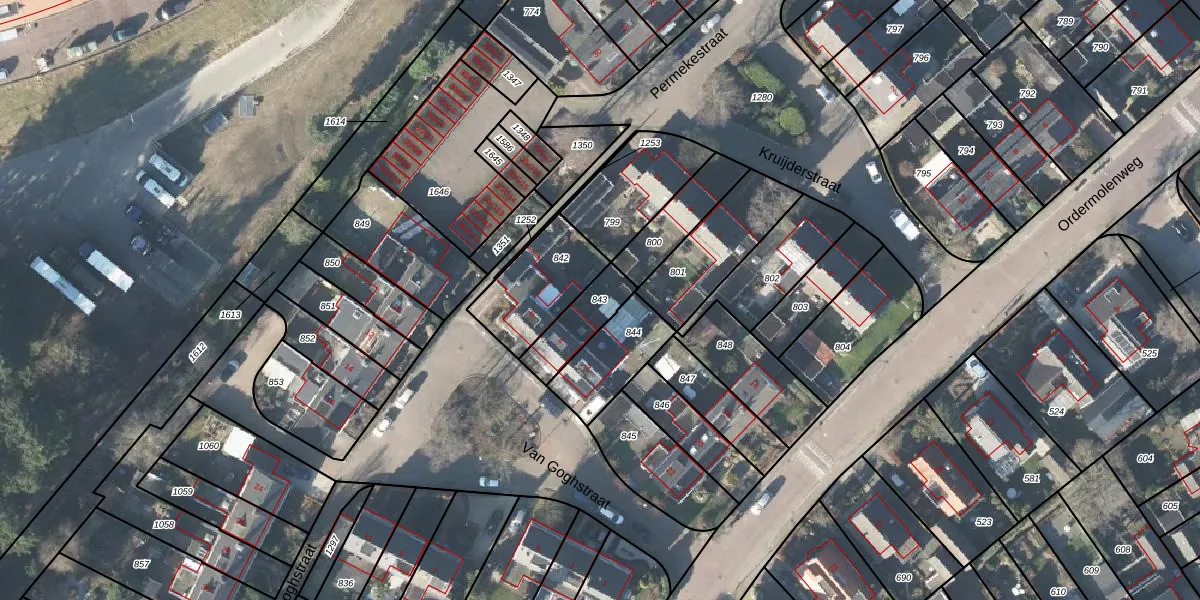 Gebruik de zoekbalk of klik op een perceel om informatie over het perceel te bekijken.