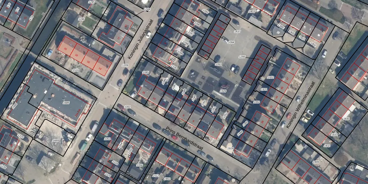 Gebruik de zoekbalk of klik op een perceel om informatie over het perceel te bekijken.