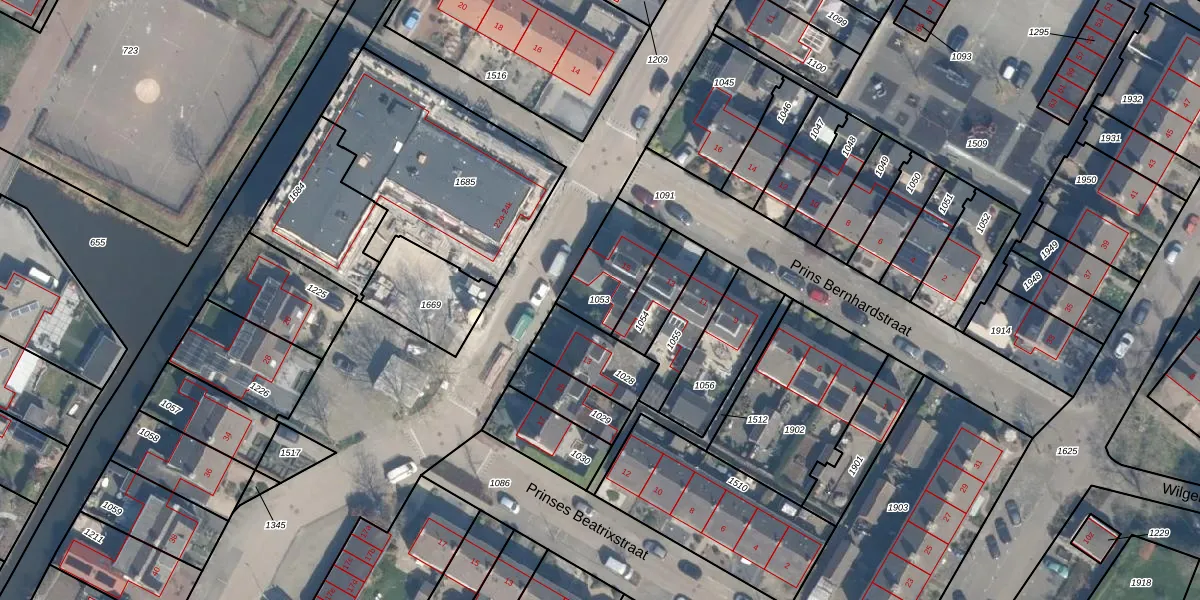 Gebruik de zoekbalk of klik op een perceel om informatie over het perceel te bekijken.