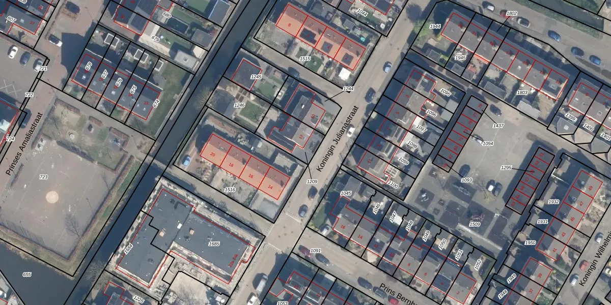 Gebruik de zoekbalk of klik op een perceel om informatie over het perceel te bekijken.