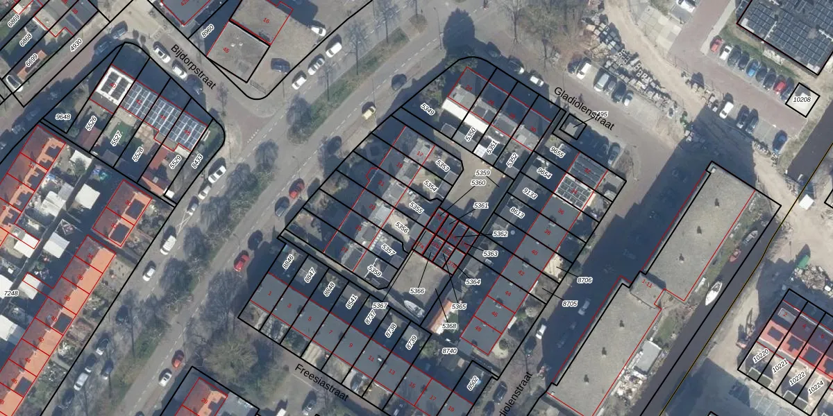 Gebruik de zoekbalk of klik op een perceel om informatie over het perceel te bekijken.