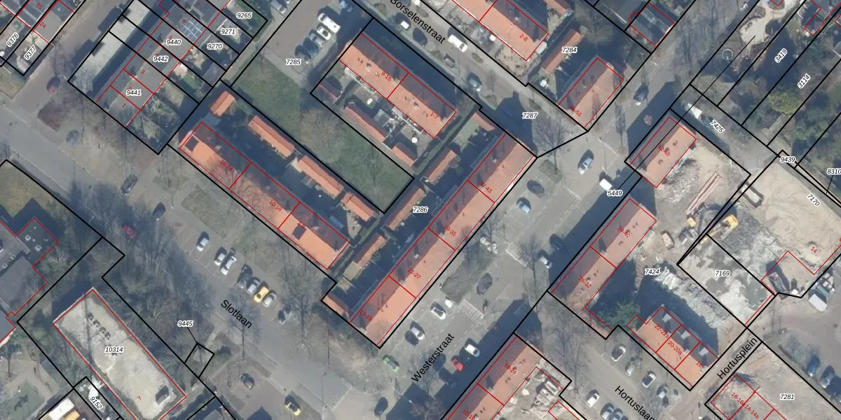 Gebruik de zoekbalk of klik op een perceel om informatie over het perceel te bekijken.