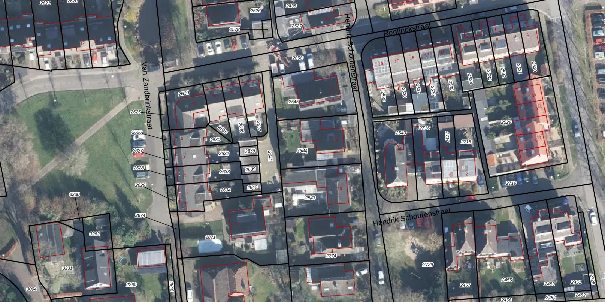 Gebruik de zoekbalk of klik op een perceel om informatie over het perceel te bekijken.