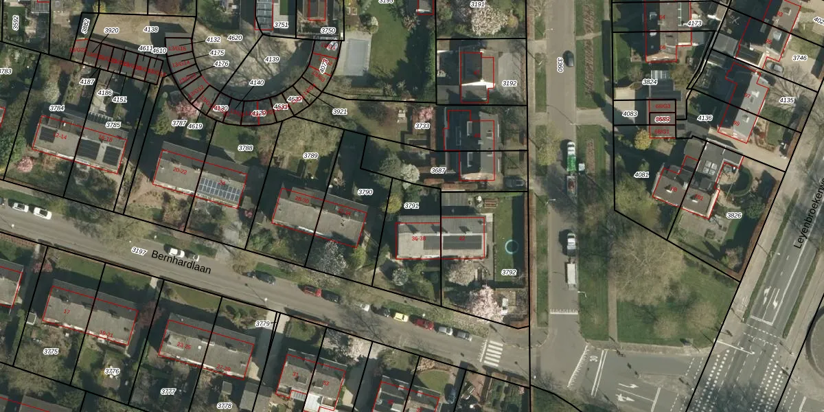 Gebruik de zoekbalk of klik op een perceel om informatie over het perceel te bekijken.