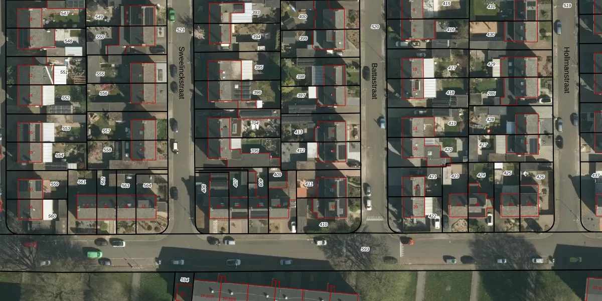 Gebruik de zoekbalk of klik op een perceel om informatie over het perceel te bekijken.