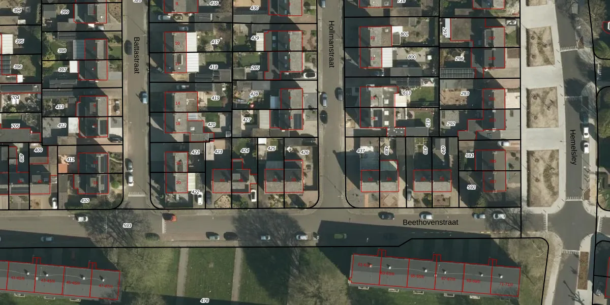 Gebruik de zoekbalk of klik op een perceel om informatie over het perceel te bekijken.