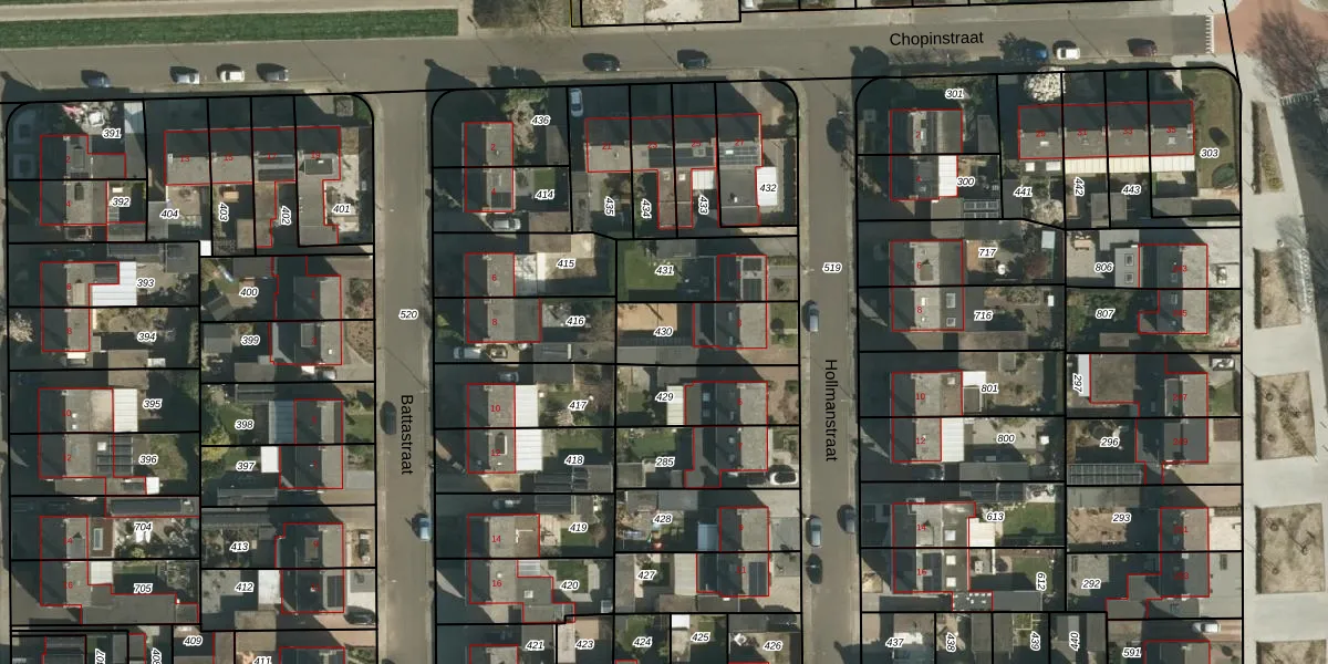 Gebruik de zoekbalk of klik op een perceel om informatie over het perceel te bekijken.