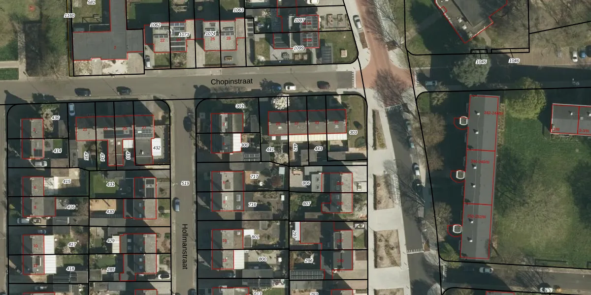 Gebruik de zoekbalk of klik op een perceel om informatie over het perceel te bekijken.